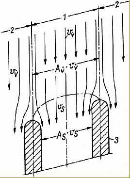 1 Teilstrom 2 Hauptstrom3 Entnahmesonde SA Querschnittv Geschwindigkeit